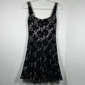 Maggy London Black Nude Floral Lace Fit & Flare Mini Dress Women’s 6