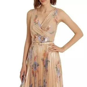 Lauren Ralph Lauren Pleated Metallic Floral Dress in Blush Multi