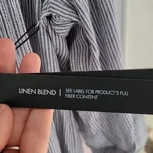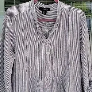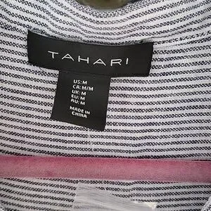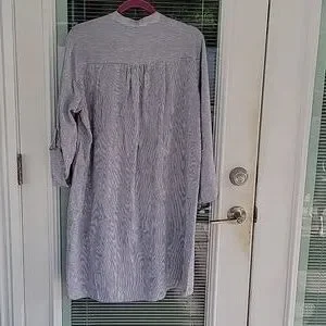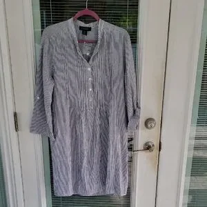 NWT Tahari Black & White Striped Linen Blend Roll Tab Sleeve Pullover Dress Sz M