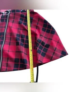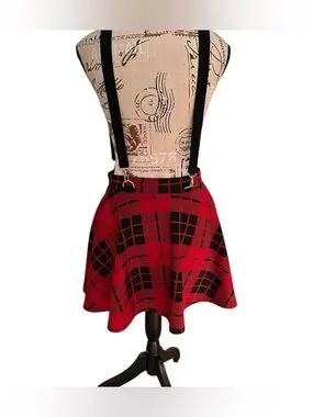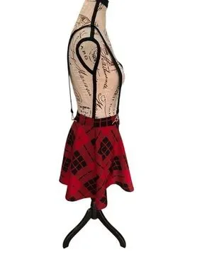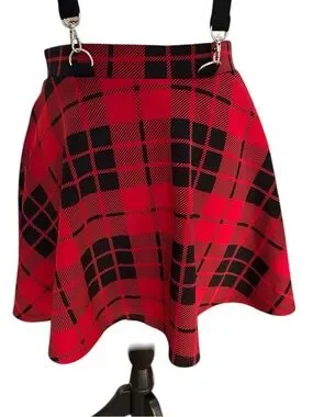 Red Black Plaid Skater Mini Skirt O Ring Zip Suspender Goth Punk Small Indie
