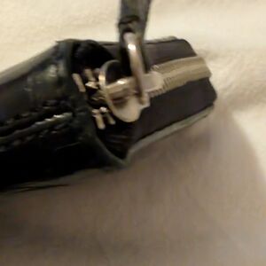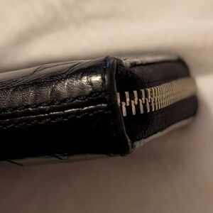 Coach Black Croc-Embossed Zip Around Wallet with Silver Logo