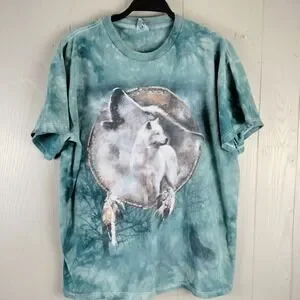 Vintage Y2K Wolf T-Shirt Mens Large Tie Dye Short Sleeve Dream Catcher Indian