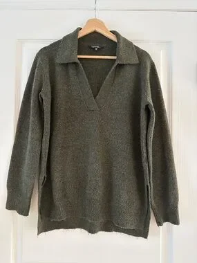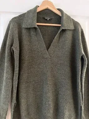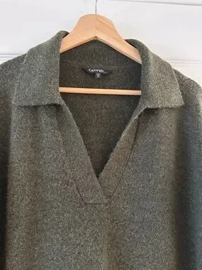 Olive green knit polo sweater, Size XS