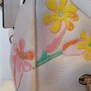 Coach Floral Pebbled Leather Shoulder Bag Crossbody White Pink Spring Y2K
