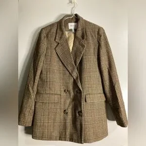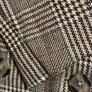 Stylish plaid blazer paired with black pants. Perfect for a chic look.