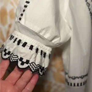 Topshop White Peasant Blouse with Black Embroidery Size 10