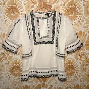 Top Shop Soft white blouse with detailed black embroidered panels.