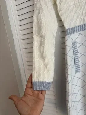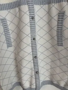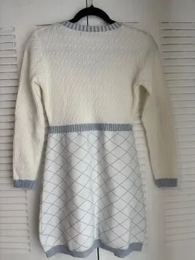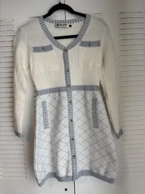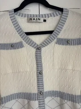 NAIN White Blue Knit Cardigan Dress Button Front Chic Feminine Style