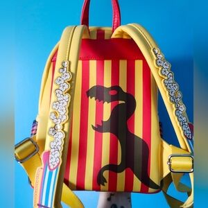 Playful Loungefly mini backpack with bold clown artwork. Bright striped canopy and colorful character panel. Zippered front pocket and logo plaque. Fun collectible accessory for fans.