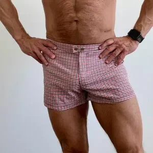 Men's Red & White Gingham Swim Trunks
