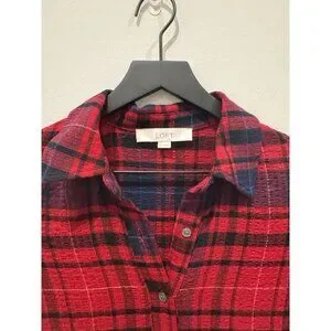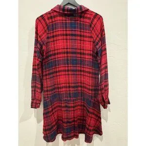 Loft Plaid Mini Shirt Dress Long Sleeve Size Small NWOT Red