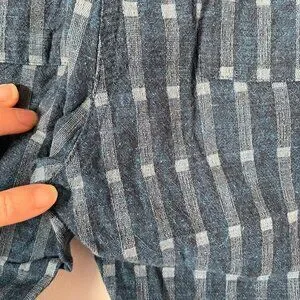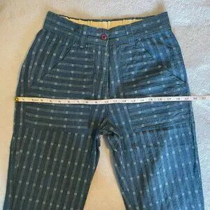 @art_shoes_etc hi! The hips are about 19.5-20'. On my end the pants fit more like a larger S, but I think it really depends from person to person. It's not a spot on the pants, just a shadow from a crease. I can take more close ups if you'd like!