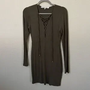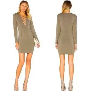 LOVERS + FRIENDS | Union Long Sleeve Lace Up Dress in Moss Green | Size Small