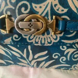 Patricia Nash Teal Blue Floral Leather Top-Handle Crossbody NWT