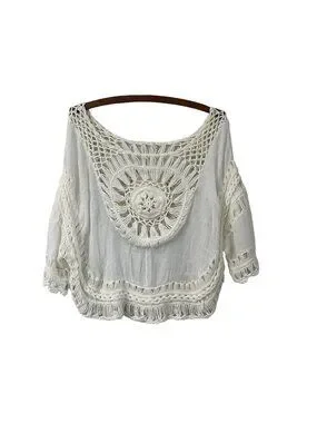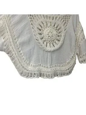Bohemian Cream Crochet Cropped Hippie Top Size M/L