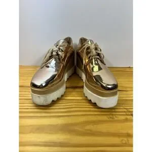 Metallic Rose Gold Platform Oxford Shoes Size 7.5 Lug Sole Chunky Lace-Up