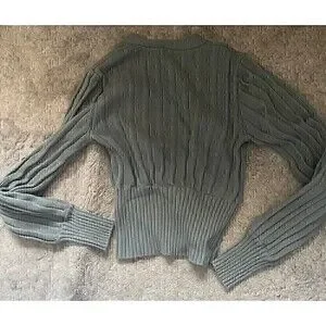 Deep v cardigan! This cardigan is a rich, dark green color.