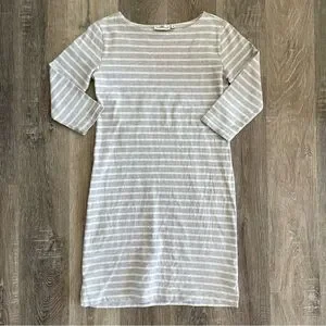 Vineyard Vines Gray and White 3/4 Length Sleeve Striped Dress