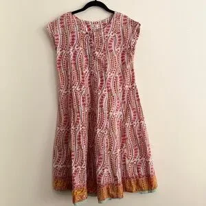NWOT Anoukhi Hand-Blick Print 100% Cotton Boho Sleeveless Dress Size XS/S