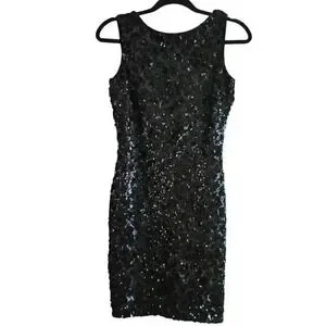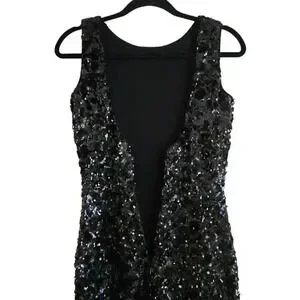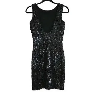 Dress the Population Black Sequined Deep V-Back Mini Dress Size Small #069