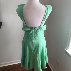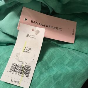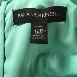 Banana Republic 100% cotton dress in mint green and a criss crossed top. Pox on each side. Fully lined and has a hidden back zipper and a hook-and-eye closure. Aline with a ruffled hem. Some stretch. Bust 36", waist to hem 20". Brand new with tags still attached.