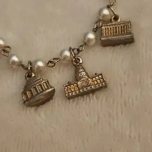 Vintage Faux Pearl Washington DC Buildings Souvenir Travel Charm Bracelet