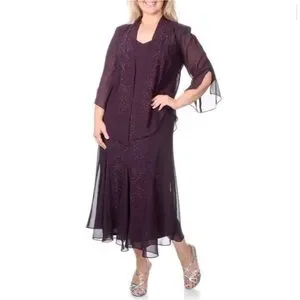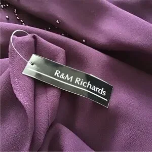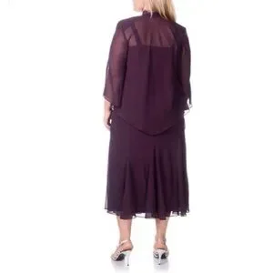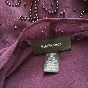 R And M Richards Beaded Two Piece Dress Jacket Eggplant Purple Maxi Size 18