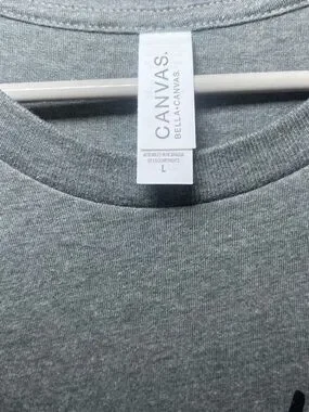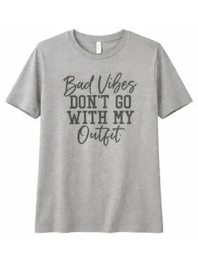 This Bella + Canvas grey graphic tee is in excellent condition. The front reads: "Bad Vibes Don't Go With My Outfit" in dark gray script and block text.