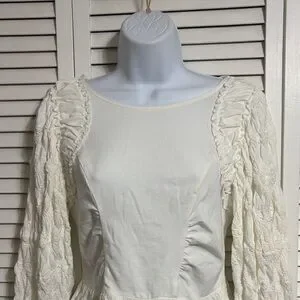 Free People Oliva Cream Ruffle-Trim Long Sleeve Blouse
