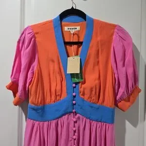 NWT Boden Pink Elsa Midi Tea Dress, Pink, Blue And Orange W/ Buttons