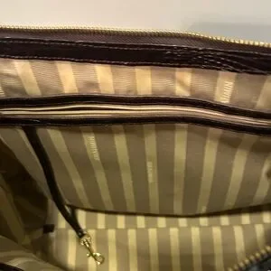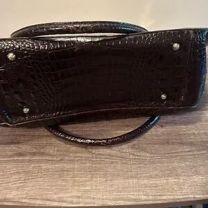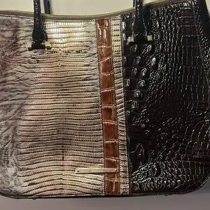 Brahmin Croc Embossed Tote Bag Brown Burgundy Tri Color