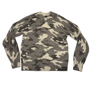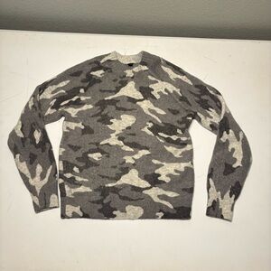 Stylish crewneck sweater with a gray camouflage pattern. Ideal for casual wear.