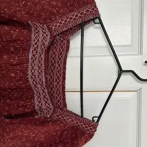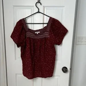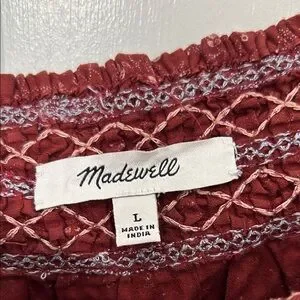 Madewell Burgundy Embroidered Square-Neck Blouse