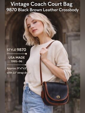 Vintage Coach Court Bag 9870 Spectator Black Brown Leather Crossbody USA