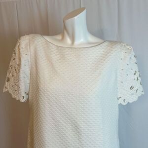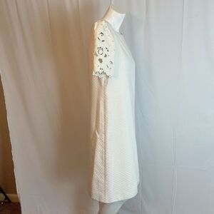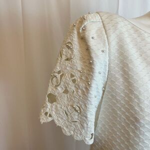 Vintage 1990s Mary McFadden Collection White Shift Dress Pearl Bridal Size 10