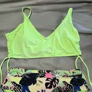 Womens 2 piece BIKINI swimsuit NOBO Lime Green/floral L(11/13)/XL(15-17)