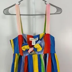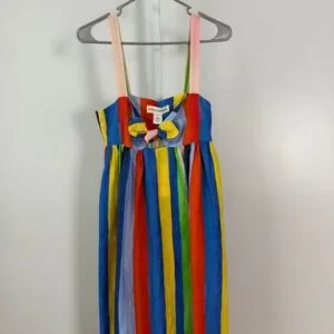 Mara Hoffman Striped Maxi Dress Tie Front Linen Blend Blue Yellow Red Green Size 4