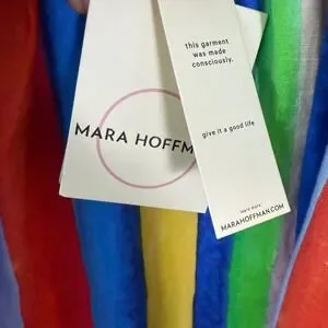 Keywords: Mara Hoffman, maxi dress, striped dress, linen blend, tie front, bow detail, colorful, summer dress, vacation wear, resort wear, organic linen, designer dress, bright