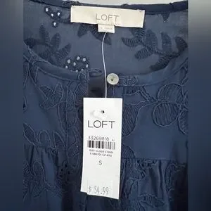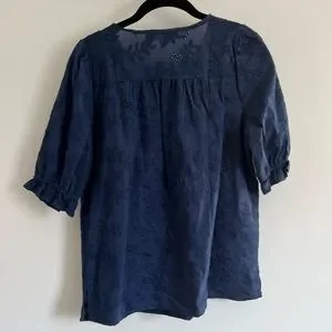🌻🆕LOFT Embroidered Puff Sleeve Top-Sailor Navy