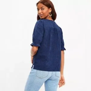 Elevate your everyday wardrobe with this LOFT embroidered puff sleeve top in timeless sailor navy.