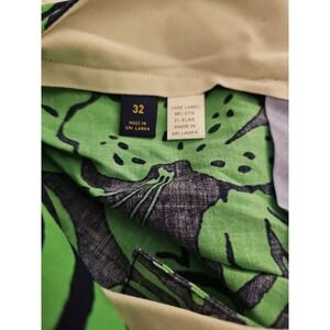 These vibrant Polo Ralph Lauren shorts feature a bold, oversized Monstera leaf and tropical floral pattern in a striking lime green and navy blue colorway. Crafted from a high-quality stretch cotton twill (98% cotton, 2% elastane), they offer both breathability and a comfortable, flexible fit for all-day wear. The shorts include classic chino styling with a button closure, zip fly, and functional pockets. The tropical aesthetic makes them a perfect statement piece for summer vacations, beach outings, or upscale casual events. Known for their durability and timeless preppy appeal, Ralph Lauren pieces like these maintain excellent resale value. The 'Made in Sri Lanka' tag and modern label design indicate a contemporary production era. The fabric remains crisp with vibrant color retention, showing no visible signs of fading or wear.