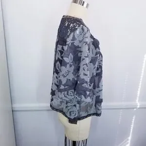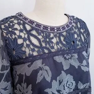Esley |‎ Floral Flare Top + Lace, Gray Small