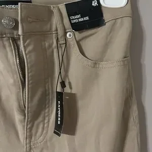 EXPRESS size 4 REGULAR tan pants. Two front pockets. Two back pockets. Waist measures about 14 inches. Inseam measures 25 inches. Keep for yourself or give as a gift since they are new with tags (NWT).
