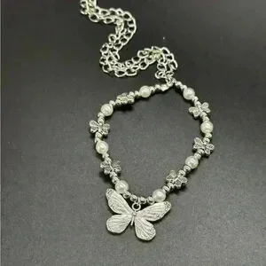 Butterfly Necklace Choker with Pearl charms. Coquette charm necklace 💗