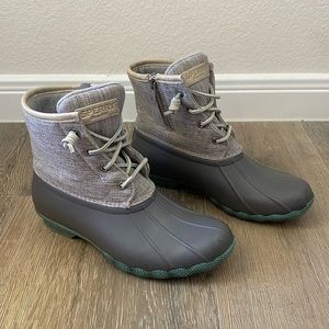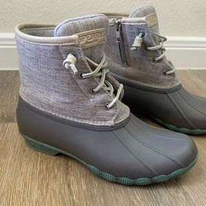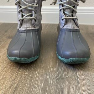 Sperry Gray and Green Duck Boots