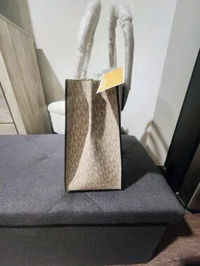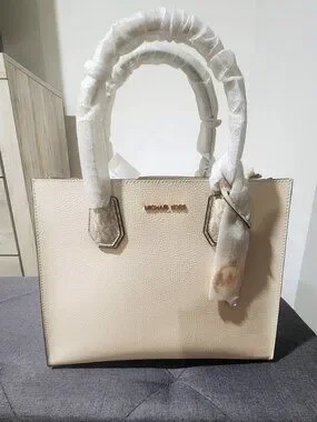 NWT Michael Kors Mercer Large Accordion Tote Cream Leather + MK Logo Sides
