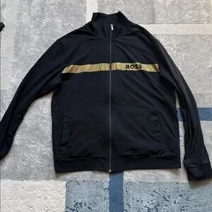 Boss Black Zip-Front Jacket with Gold Mesh Stripe