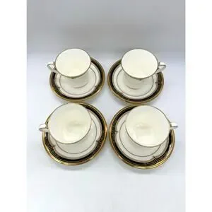 Vintage Noritake Gold and Sable 9758 Set of 4 Tea Cups & Saucers EUC Bone China
