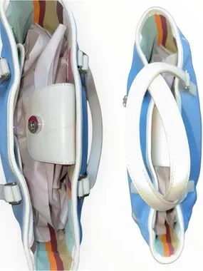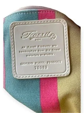 The interior pops with Fossil’s multicolor striped lining and includes two interior pockets and a zip pocket for easy organization. Comes with both top handles and a detachable shoulder strap for versatile styling.