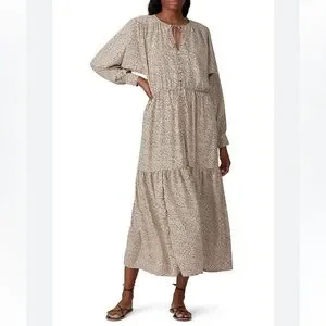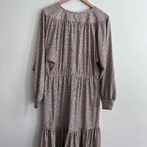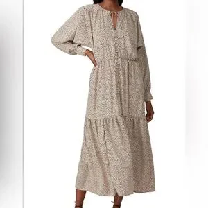 tay stylish and comfortable with this Sweet Baby Jamie modest midi dress featuring a timeless boho-inspired design. Crafted from lightweight polyester, this dress showcases a neutral base with a multicolor ditsy floral print, long sleeves with elastic cuffs, and a tiered skirt for a feminine flow. The button-back detail and adjustable tie neckline add delicate charm, while the relaxed fit and elastic waist provide all-day comfort.